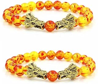 Bernsteinkette Bernstein Armband, Naturstein Bernstein Armband Türkis Lava Stein Stretch Doppel Drachenkopf Armband Armband Zubehör Männer Und Frauen Perlen Armbänder 8Mm-Farbe 1