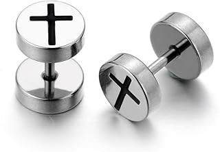 Kreuz Herren Damen Ohrstecker Ohrringe Fakeplugs Fake Ohr-Plug Tunnel Gauges Ohr-Piercing Edelstahl, 1 Paar
