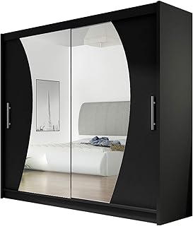Schwebetürenschrank Miami I Modernes Kleiderschrank, Schlafzimmerschrank, Schiebetürenschrank, Garderobe, Schlafzimmer (Schwarz)